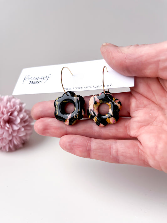 Black Marble Flower Hoops