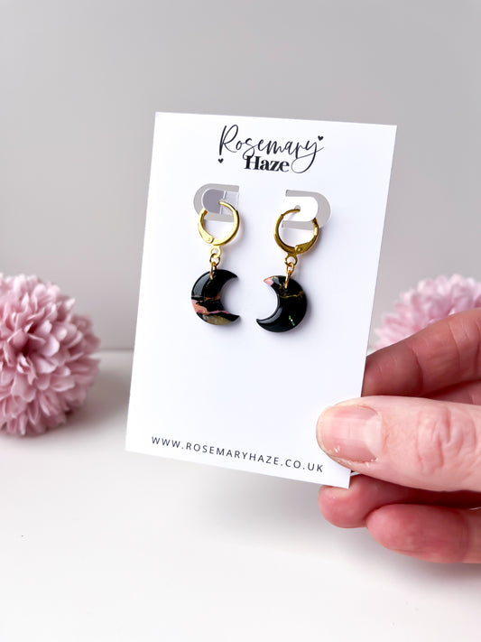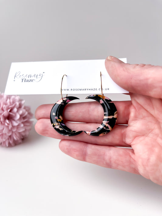 Sold outBlack Marble Moon Hoops
