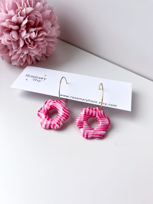 Sold outAbstract Pink Flower Hoops
