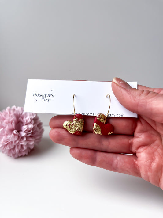 Sold outRed & Gold Heart Hoops