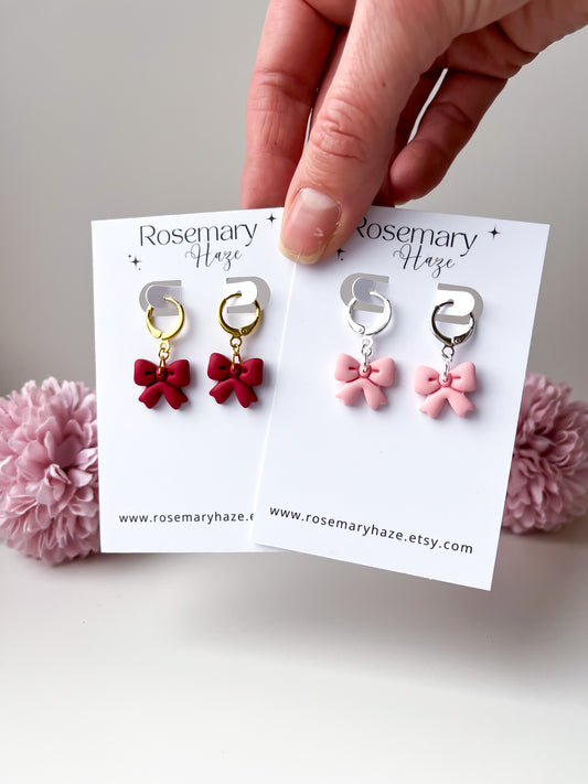 Dark Red Bow Studs