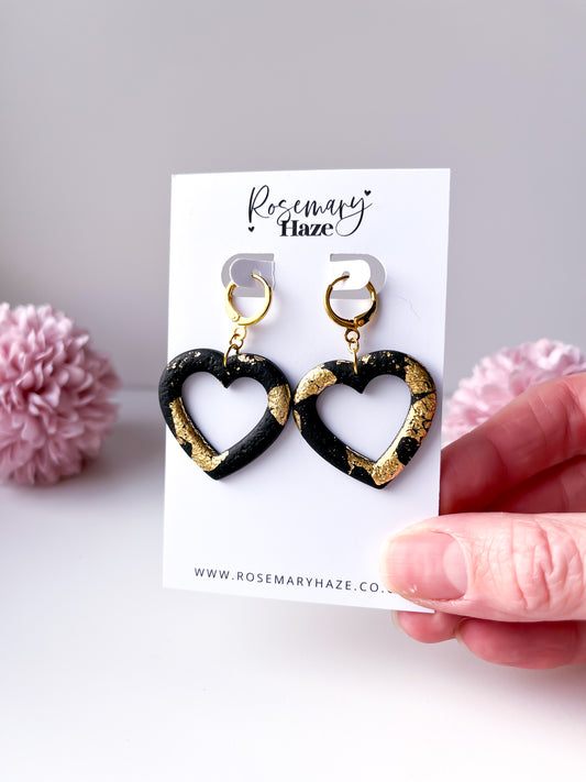 Black & Gold Heart Hoops